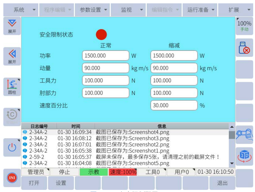 出于安全原因,機器人的某些功能可能會受到限制。要配置這些設置航到 運行準備 >安全配置 > 安全限制。
