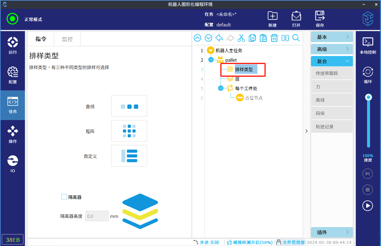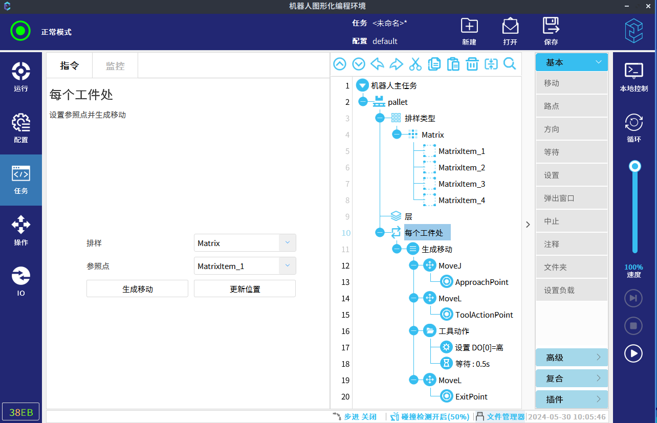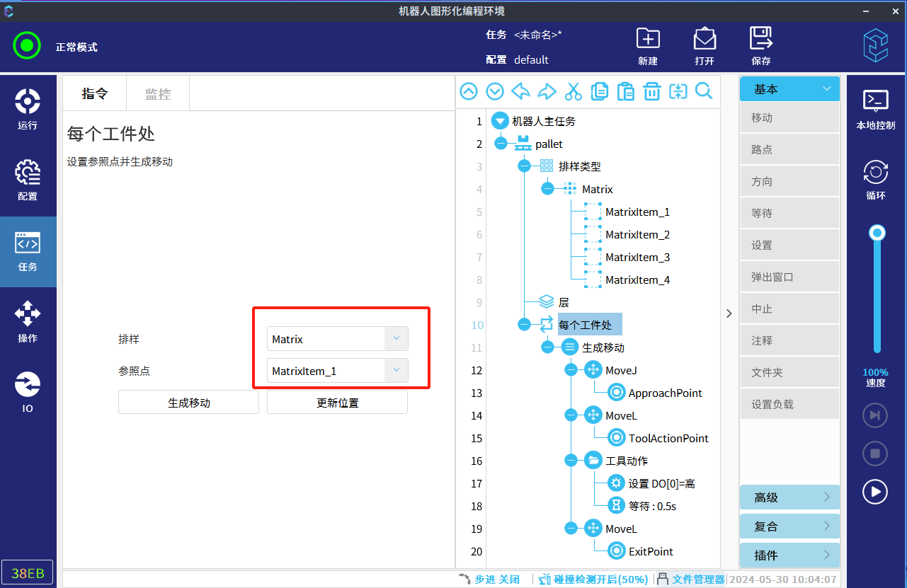 碼垛支持用戶自定義排樣類型、層數(shù)、參考點等,進行碼垛和拆垛任務的編寫。