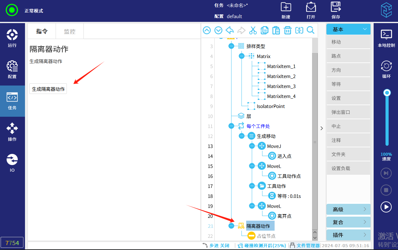 1. ‘拾取隔離器’:此節(jié)點需要客戶根據(jù)現(xiàn)場情況設置動作。