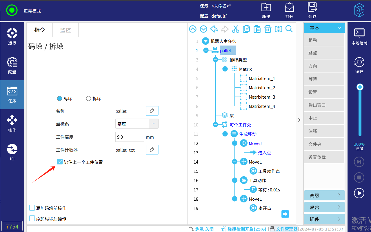 勾選記住上一個工件位置后,在配置中的全局變量生成‘pallet_cnt‘變量,此變量可斷電保持