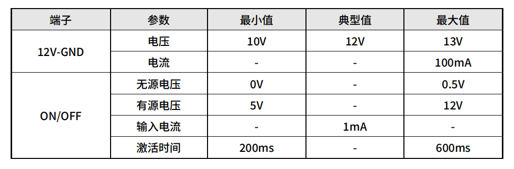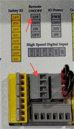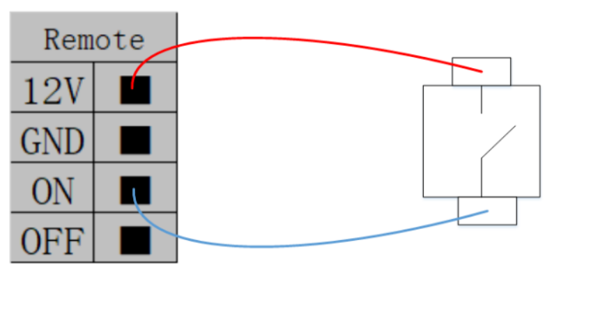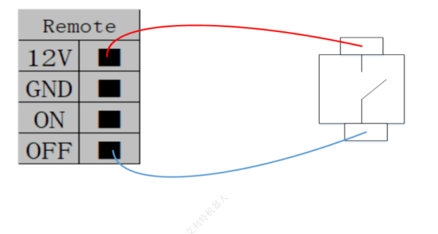 遠程 ON/OFF 控制提供 12V 輔助電源,在控制箱電源打開,且未啟動控制柜的情況下。只需要把線接出來即可實現遠程開關機。