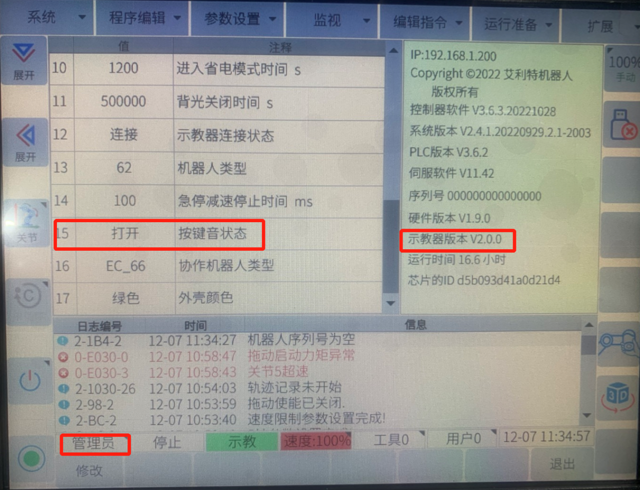 1. 低版本的示教器和軟件版本不持支關閉聲音
