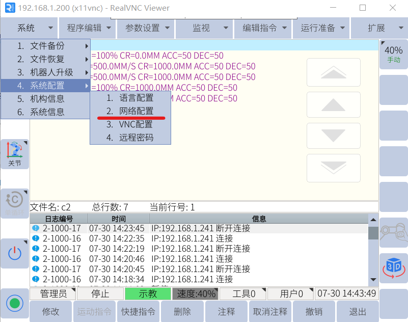 VNC是一款優(yōu)秀的遠程控制工具,Elite_EC系列機器人內部已經集成VNC服務器,用戶可以通過網線鏈接即可在電腦上進行查看、控制機器人的示教器界面。