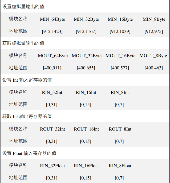 模塊功能及對(duì)應(yīng)的控制器的 M 變量或 profinet 寄存器的地址范圍具體如下: