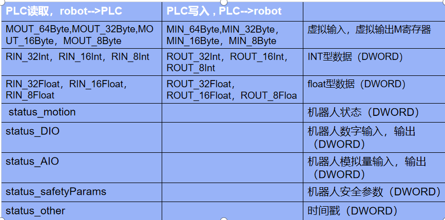 以上是機(jī)器人profinet通訊寄存器的地址以及可以讀取寫入的數(shù)據(jù)類型。