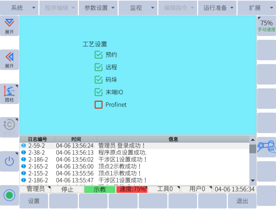 用戶可選擇“系統(tǒng) > 系統(tǒng)配置 > 機(jī)器人配置”,并勾選“Profinet”,啟用 Profinet 功能,如圖2-1所示。