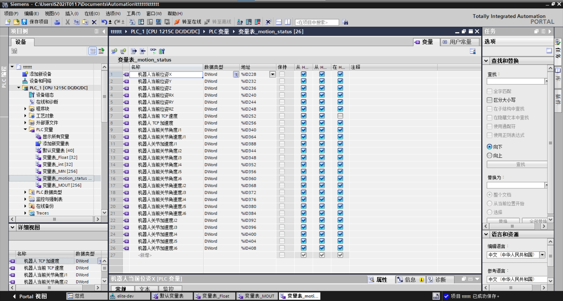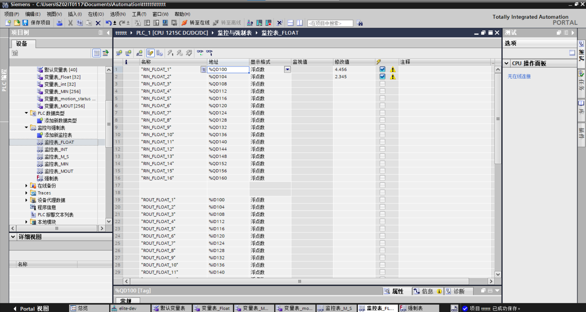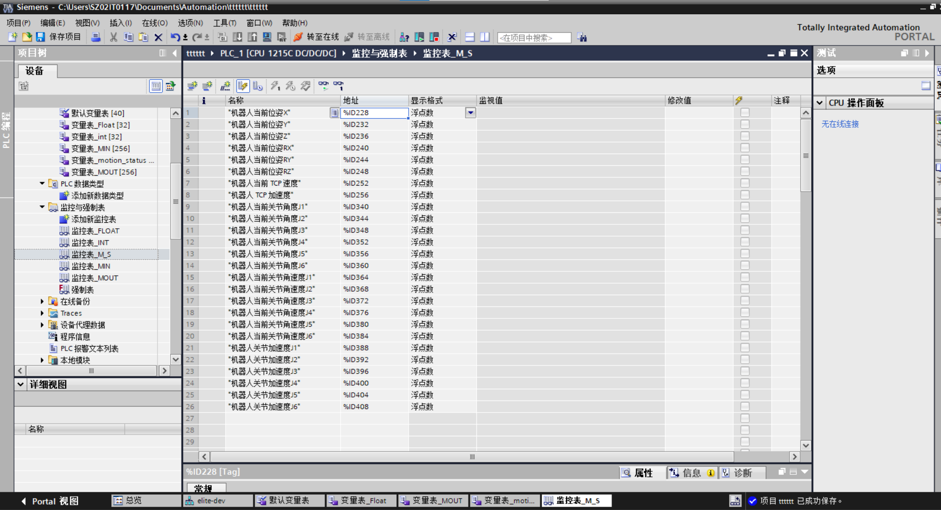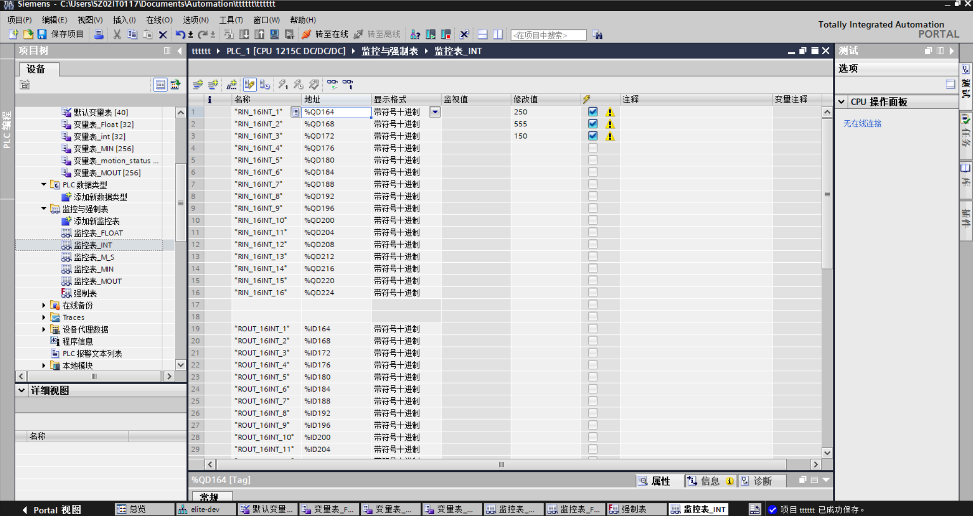 機(jī)器人端啟動(dòng)腳本,plc開啟監(jiān)視即可看到輸入輸出值的變化。