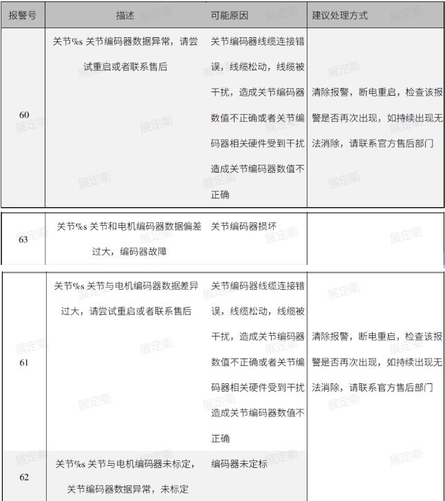 3. 報警代碼:62,關(guān)節(jié)編碼器未標(biāo)定