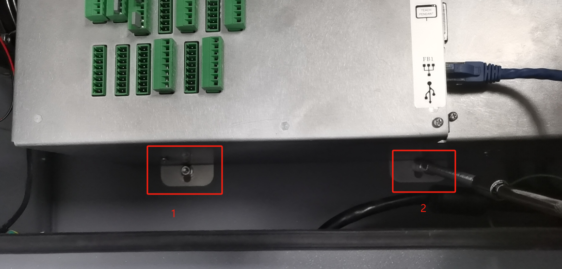 2.1.1 檢查控制柜上面的示教器插頭是否松動(dòng),并緊固。
