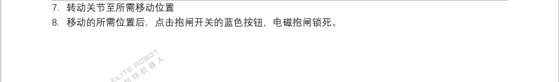 - 伺服關節損壞報警異常后無法通過以上松開抱閘方法操作,需手動松開,具體參考CS服務手冊操作指南