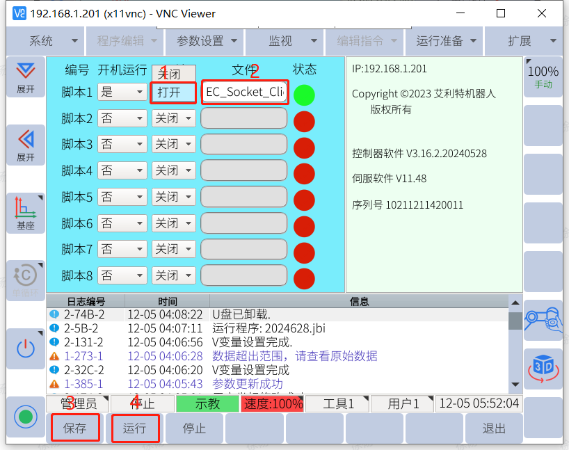 3、 機(jī)器人運(yùn)行加載Socket通訊lua腳本