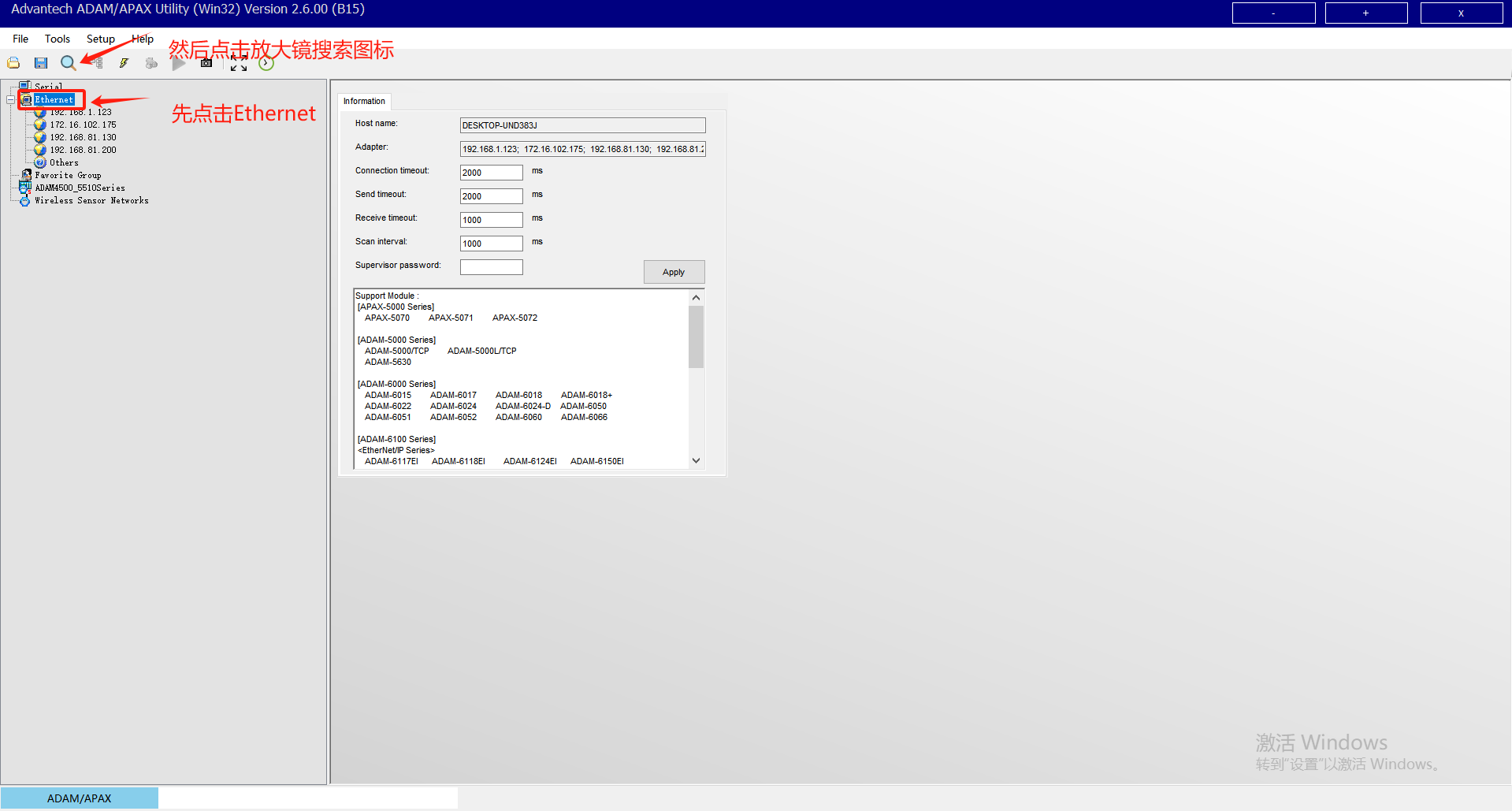 電腦IP與模塊的IP設置為同一網段,然后打開軟件,按下圖操作開始進行