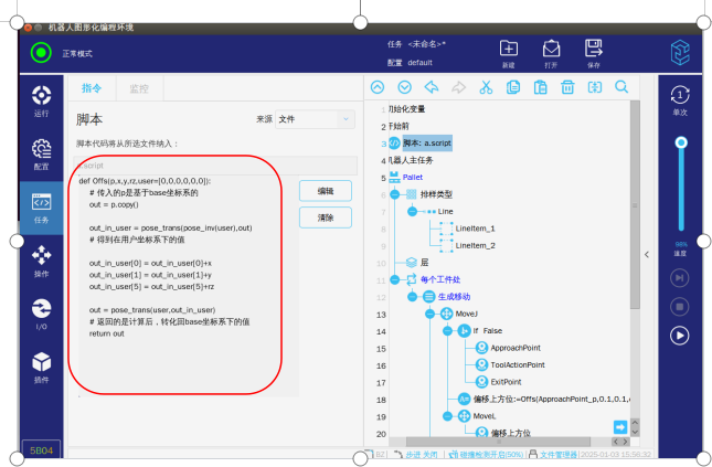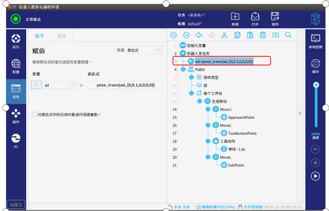 第二步:使用pose_trans函數(shù)將坐標(biāo)系ad按照得到的偏移值進(jìn)行偏移(如圖-3紅框標(biāo)記處),這樣碼垛工藝包里的碼垛點(diǎn)也會(huì)隨著坐標(biāo)系ad的偏移而偏移。