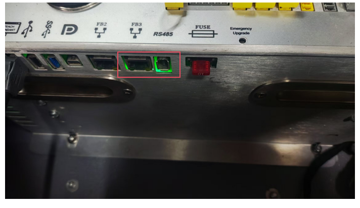 觀察機器人控制柜RS485端口是否有綠光,如果有請按照2.2.1步驟排查,如果沒有請按照2.2.2步驟排查,如圖-2位置所示。