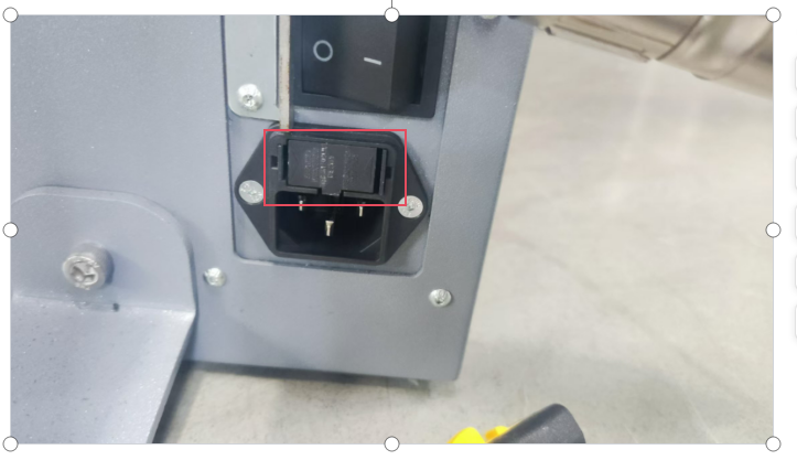 第一步:首先將控制柜電源線插上電源,將萬用表紅表筆插在圖-5紅框標記處,黑表筆插在綠框標記處測量是否有220V,如果有220V就按照第二步去排查保險絲是否燒掉了。