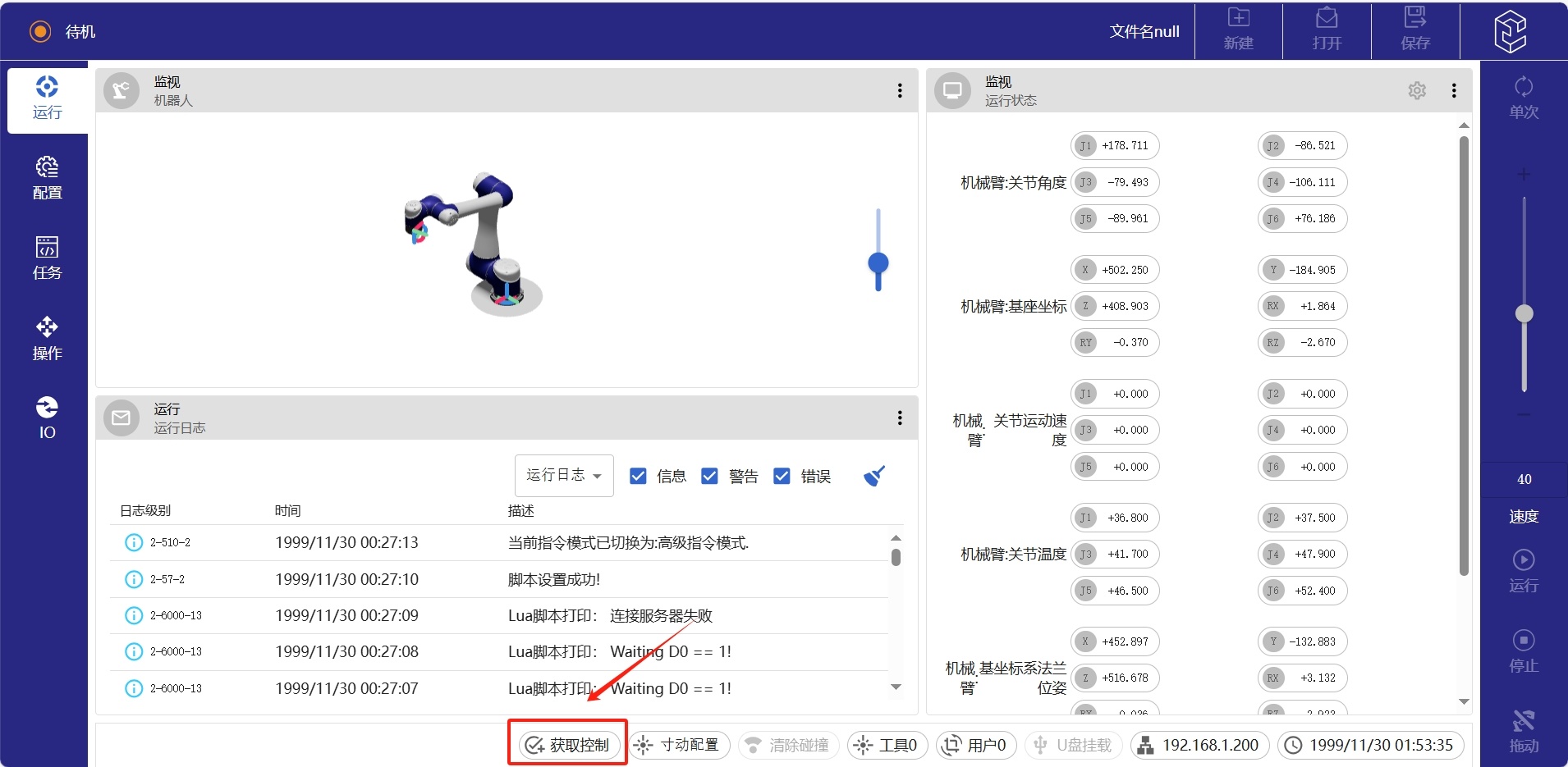 打開瀏覽器輸入 http://192.168.1.200:6680/,(192.168.1.200根據當前機器人IP進行替換)