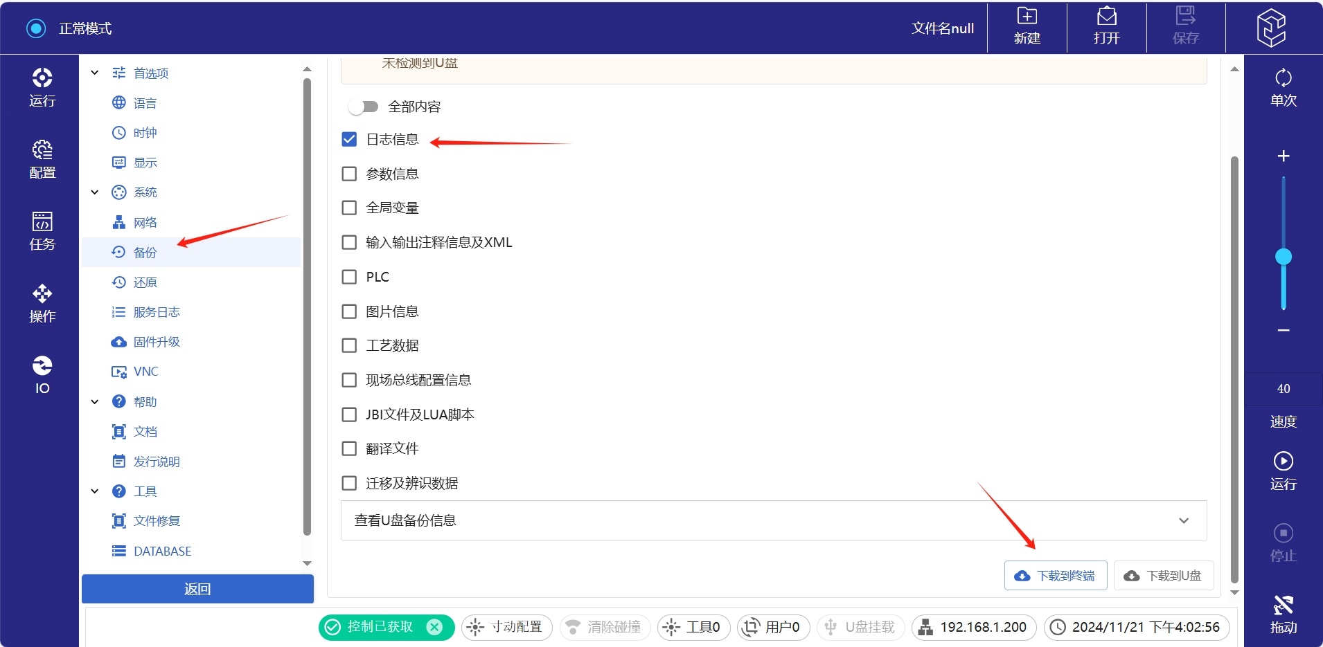 在機器人使用過程中如果 u 盤接口損壞或者沒有 u 盤的時候需要拷貝報警日志,可使用如下方法查看報警日志: