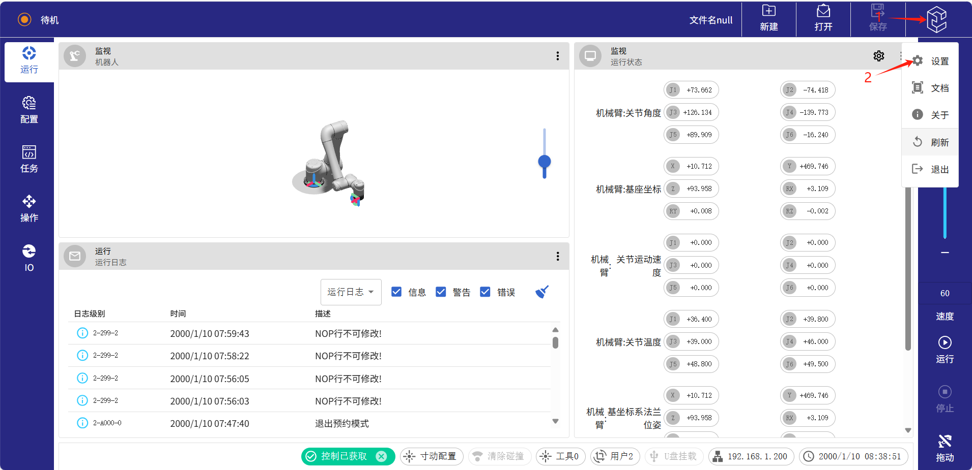 ● 先登錄網(wǎng)頁(yè)版示教器,具體步驟可看下面文檔【2.2 筆記本電腦連接網(wǎng)頁(yè)版示教器】操作步驟