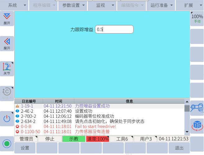擴(kuò)展-力控模式配置-力控參數(shù)-輸入?yún)?shù)-點(diǎn)擊設(shè)置。