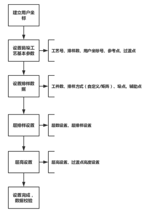 5. 若將該工藝用于拆垛時,只需將“層高”和“過渡點高度”設(shè)置為負值即可;