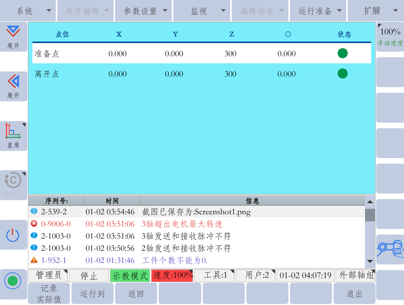 8.  輔助點-準(zhǔn)備點:該點是相對于當(dāng)前垛點的坐標(biāo)偏移點位,表示機器人在運行到垛點之前