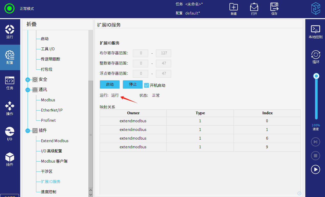 項目通常會需要通過modbus通訊來讓PLC控制機器人的啟動和暫停,還有反饋 機器人的運行,暫停狀態等。但是目前通過modbus來實現必須犧牲一個IO,MODBUS擴展插件可規避占用物理IO。