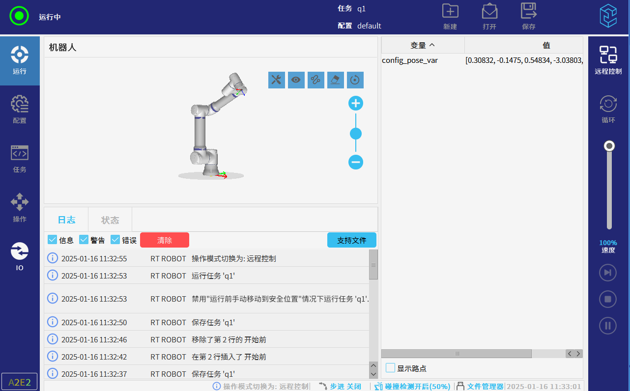 29999端口還可以打開或切換不同的任務(wù)和配置,具體使用指令可查詢EliRobot Dashboard手冊(cè),手冊(cè)下載可至官網(wǎng)或咨詢艾利特技術(shù)人員技術(shù)資料_機(jī)器人技術(shù)-艾利特機(jī)器人