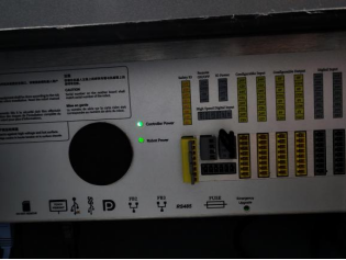 ● 按下示教器開機按鈕后,觀察下圖兩個指示燈是否亮起,兩個都亮則Safe IO板異常