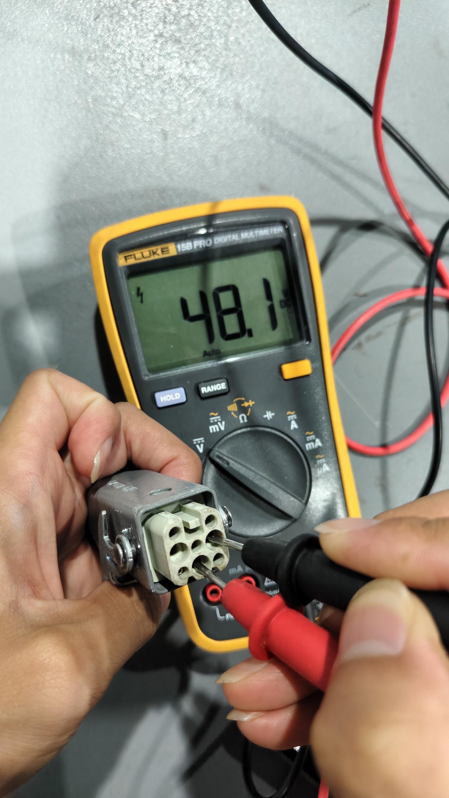 (1)斷開本體,控制柜上電,打開產(chǎn)測48V強制上電,使用萬用表測量控制柜的輸出端電壓,無輸出可斷電拆開控制柜檢查內(nèi)部接線有無脫落