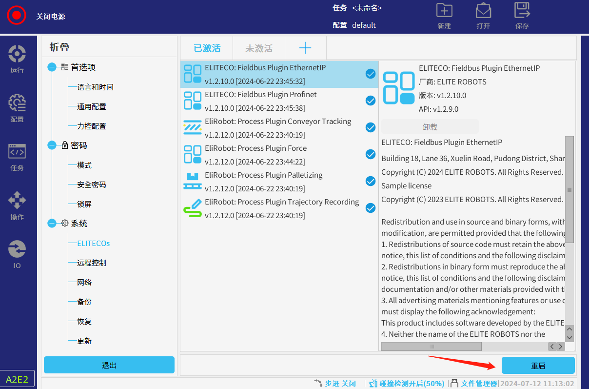 5. 點擊重啟,再重新打開一遍機器人插件。重新打開后,插件生效。