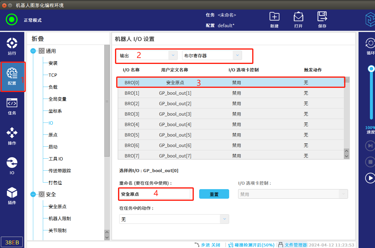 1. IO輸出信號配置安全原點信號輸出(IO信號接線交互時建議使用)