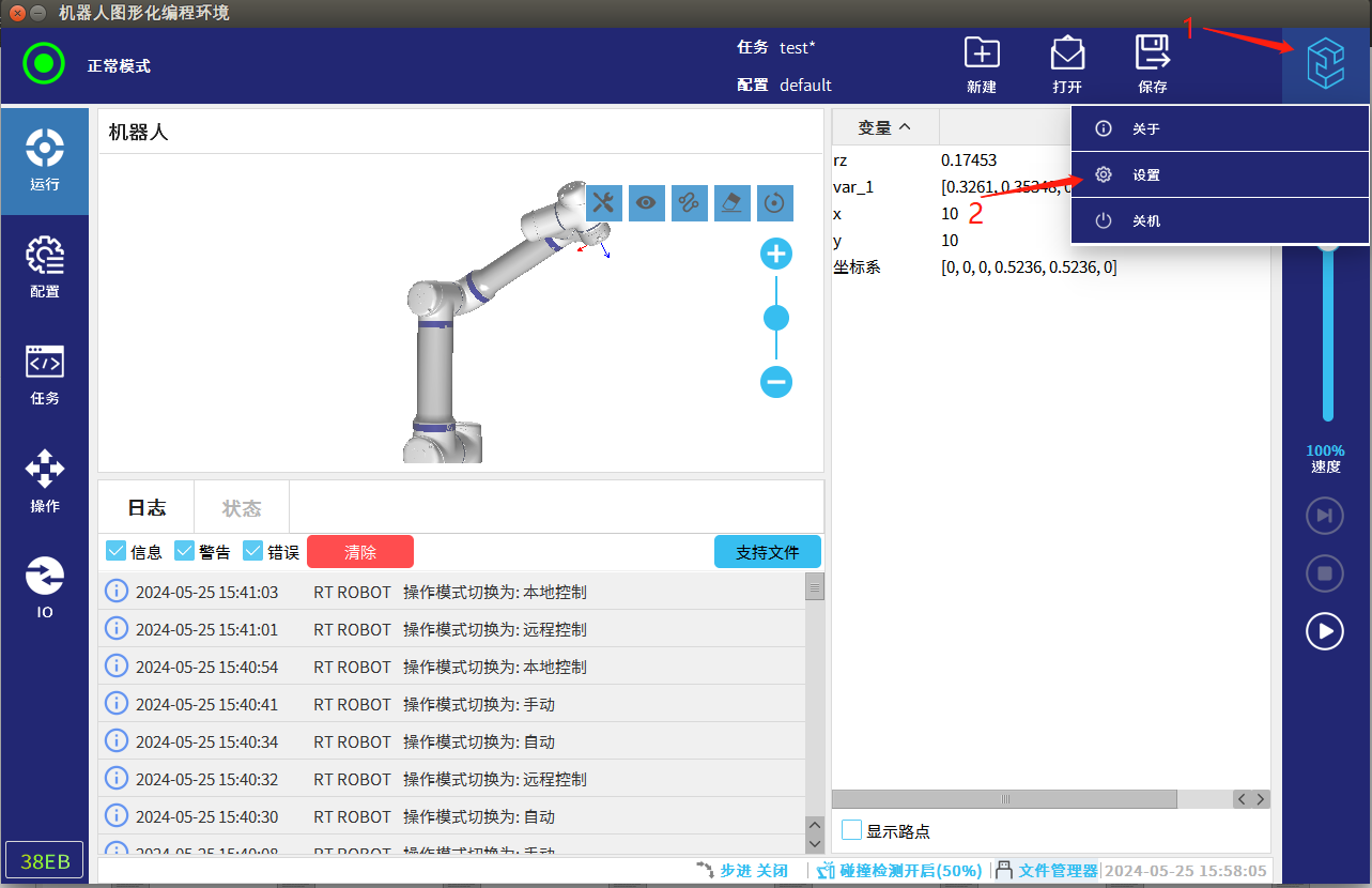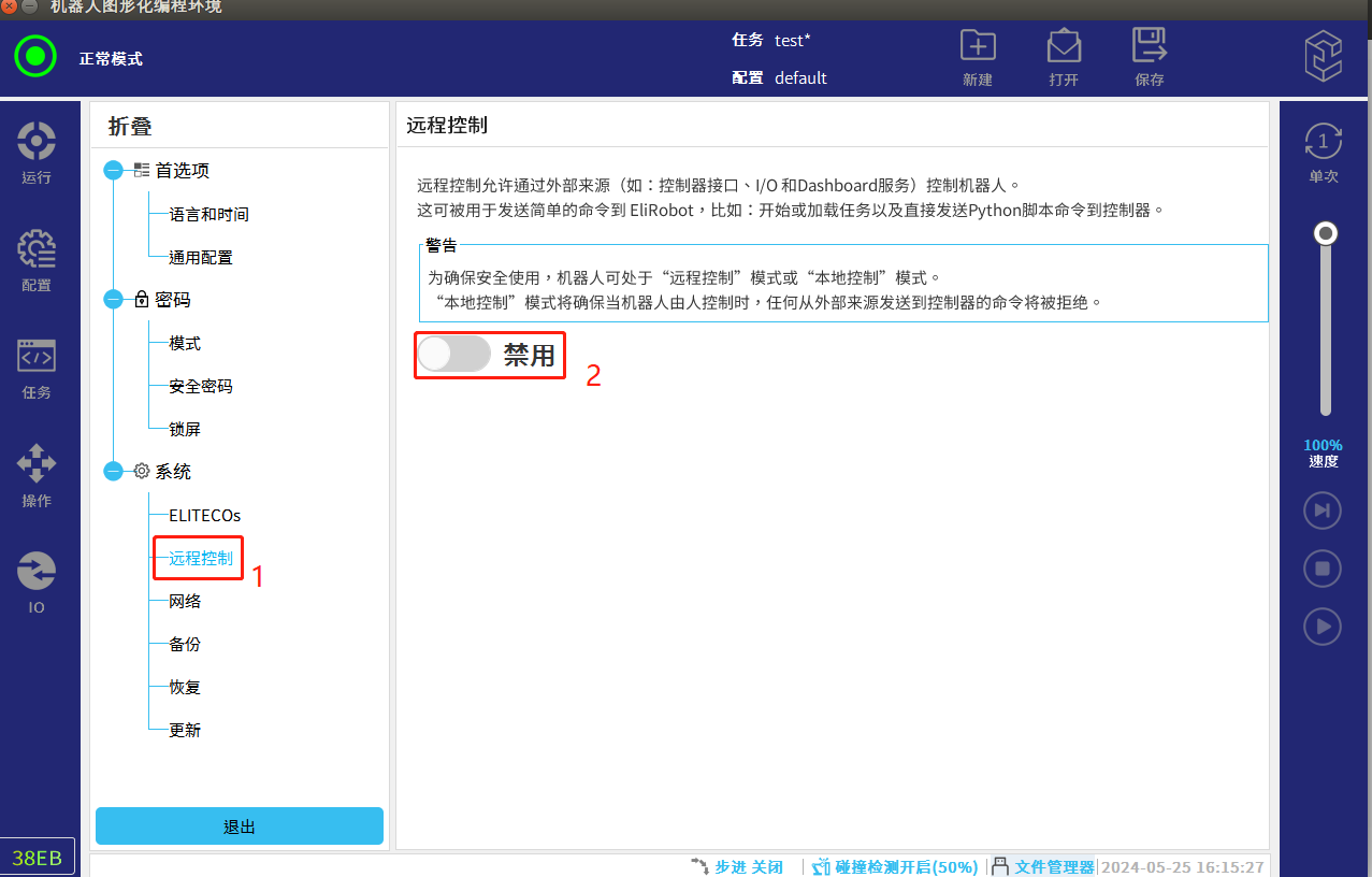 此時右上角多了一個本地控制按鈕,點擊即可進(jìn)行本地控制(手動模式)和遠(yuǎn)程模式的切換