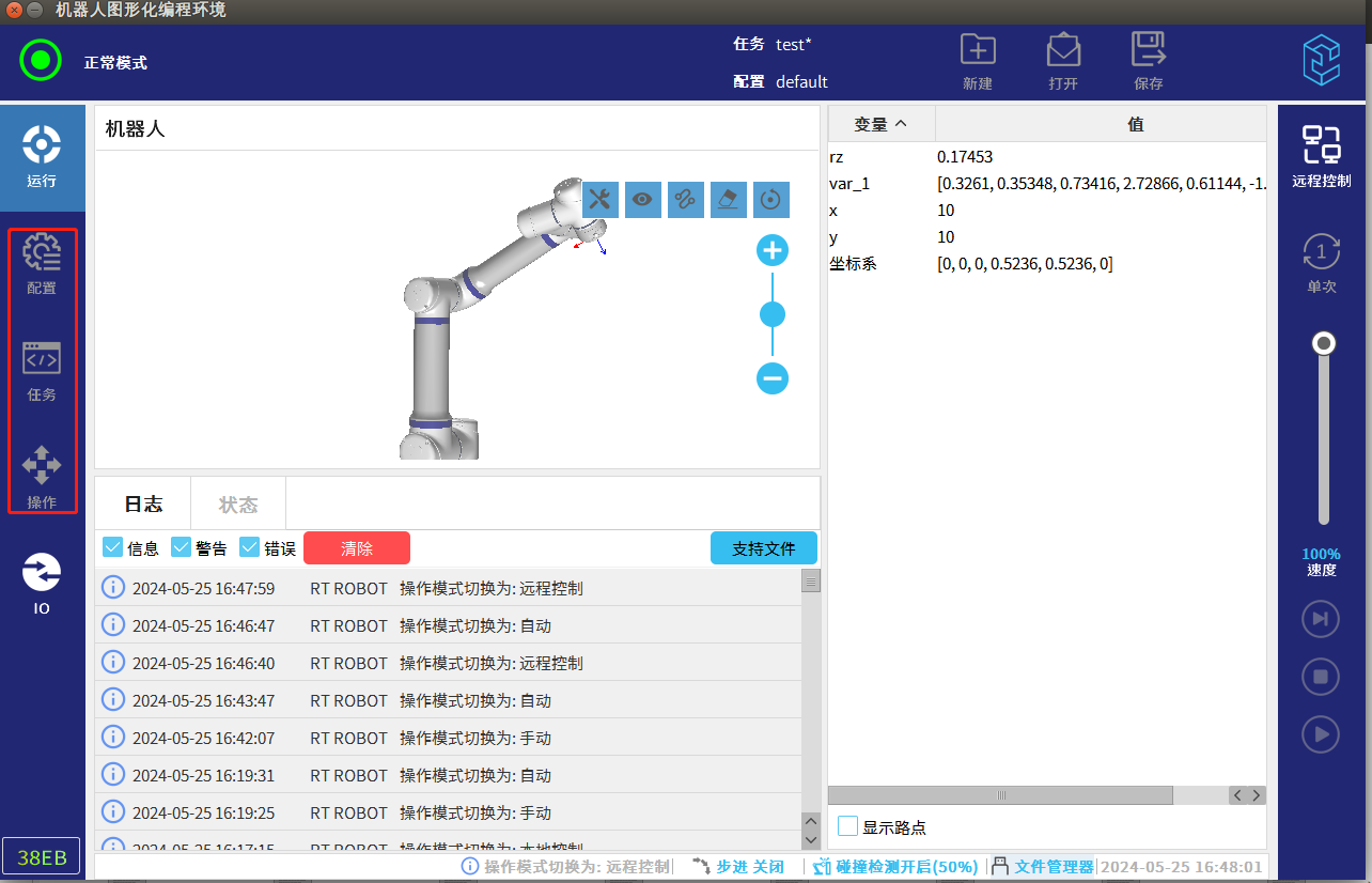 遠(yuǎn)程模式即為可以通過遠(yuǎn)程控制器來控制機器人的運動,例如通過Modbus,Ethernet,Profinet等通訊遠(yuǎn)程控制實現(xiàn)機器人的運行