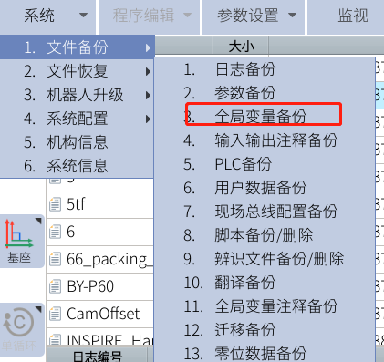 點(diǎn)擊:系統(tǒng)--文件備份,列表中1-13可以按需求備份