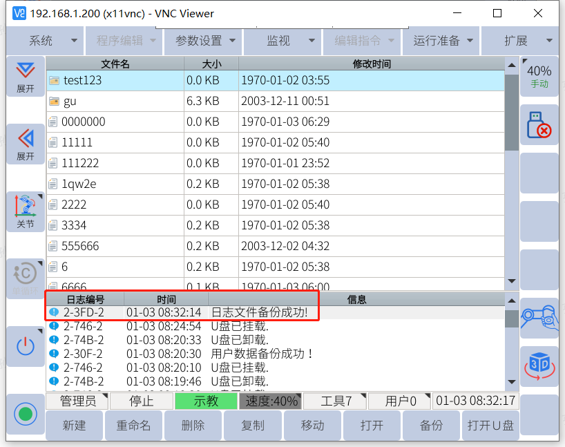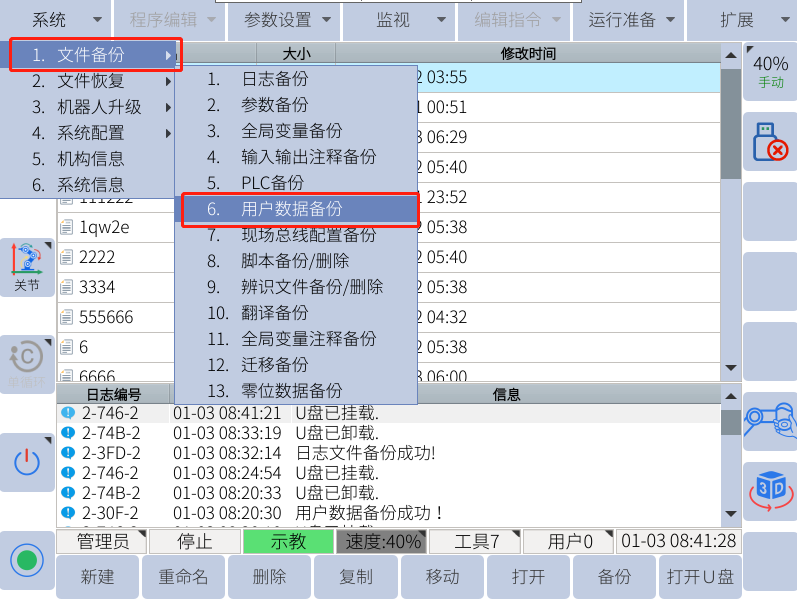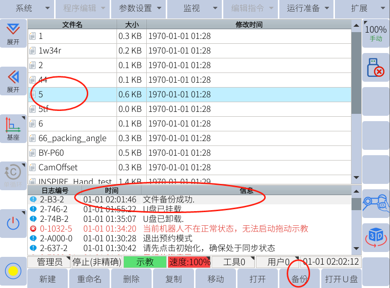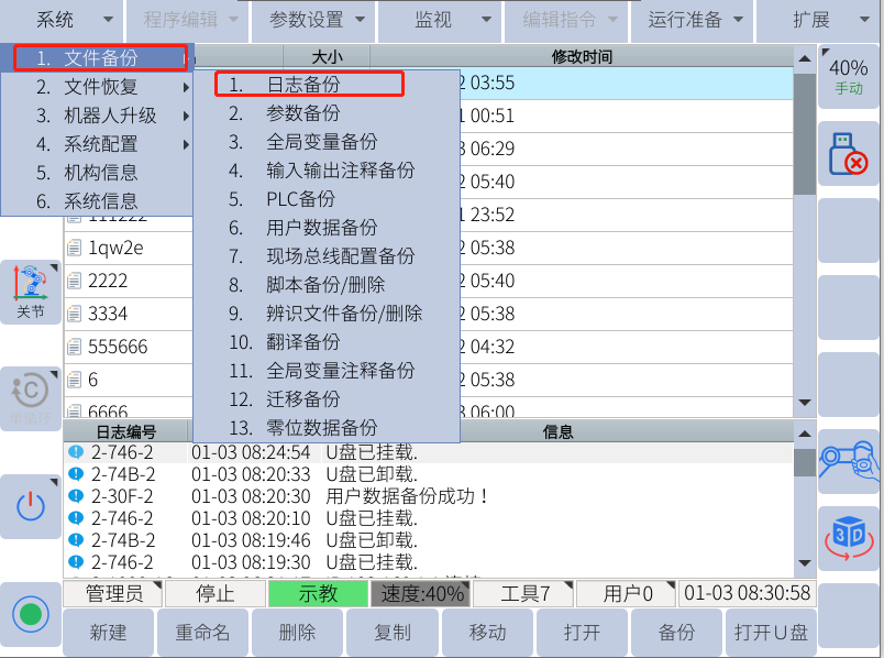 1. 當(dāng)機(jī)器人出現(xiàn)報(bào)警需要艾利特工程師排查故障原因的時(shí)候就需要進(jìn)行日志備份,