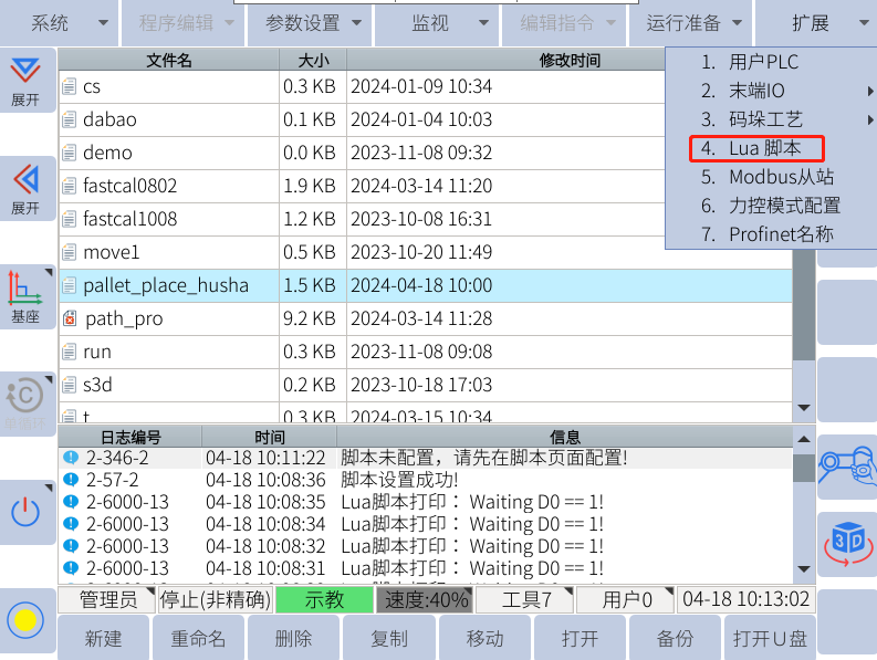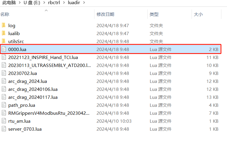 一般使用u盤進(jìn)行單個(gè)lua文件的恢復(fù)(導(dǎo)入),先確認(rèn)u盤中有rbctrl 文件夾且rbctrl文件夾里有l(wèi)uadir這個(gè)文件夾且該文件夾下面有l(wèi)ua文件