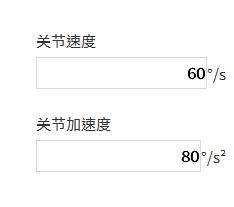 (圖2-1 關(guān)節(jié)速度230°/S 關(guān)節(jié)加速度1200°/S2) (圖2-2 直線速度1500mm/s 直線加速度10000mm/s2) (圖2-3 整體運行倍率100%)