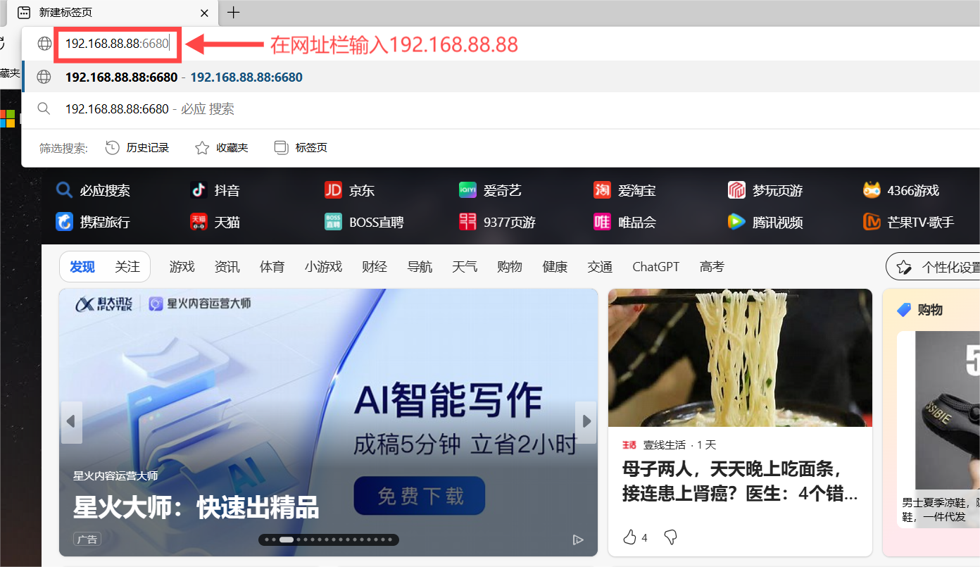 (2)"192.168.88.88:6680"里面的冒號(hào)必須是英文格式下的冒號(hào),不然會(huì)訪問(wèn)失敗。