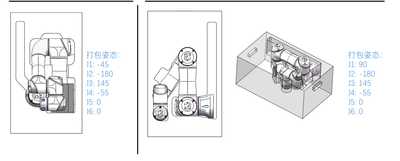 打包姿態角度:J1: -45 J2: -180 J3: 150 J4: -60 J5: 0 J6: 0