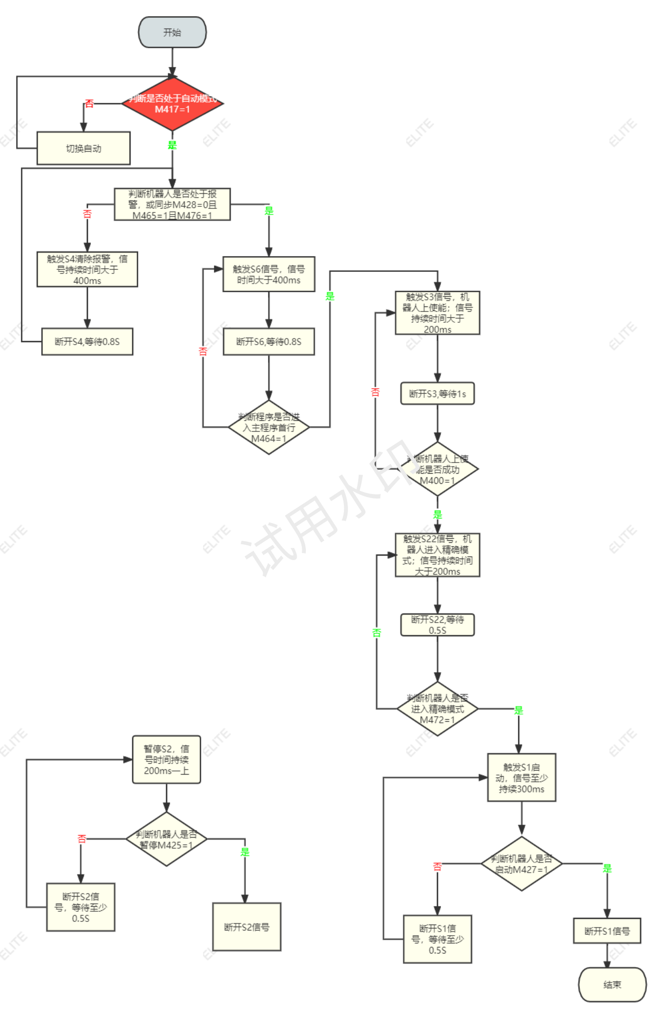 ④判斷機器人程序指針是否處于程序首行(M464),按需求可回主程序首行(S6)