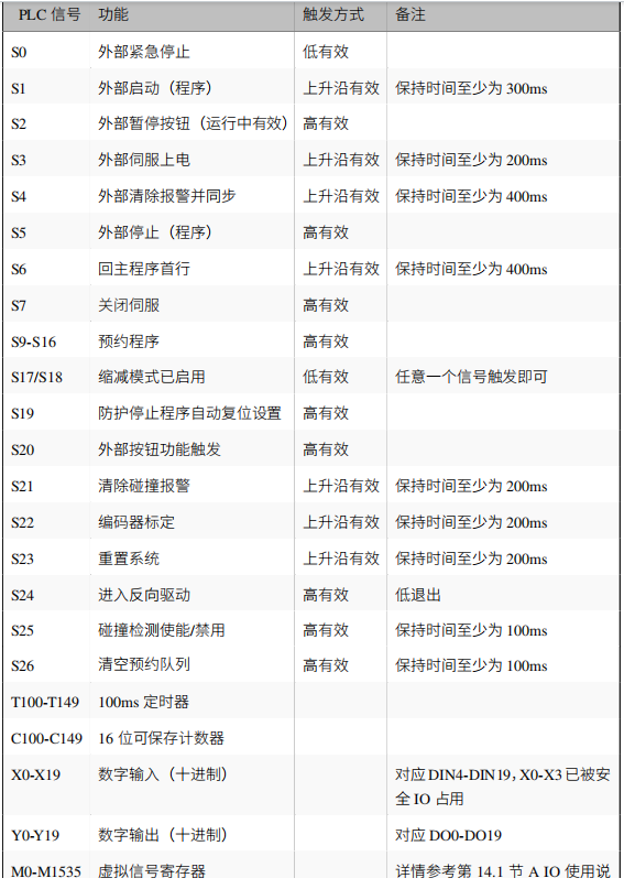②S1等代表線圈,具體信號映射可見用戶手冊--第十章用戶plc的表10-1